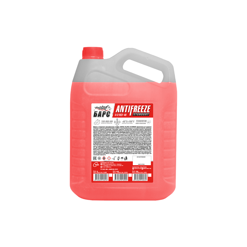 Антифриз G12 БАРС Standart Red Канистра 10 л