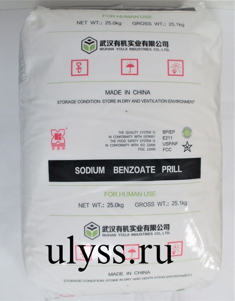 Бензоат натрия — натриевая соль бензойной кислоты. Порошок белого цвета без запаха или с незначительным запахом бензальдегида.