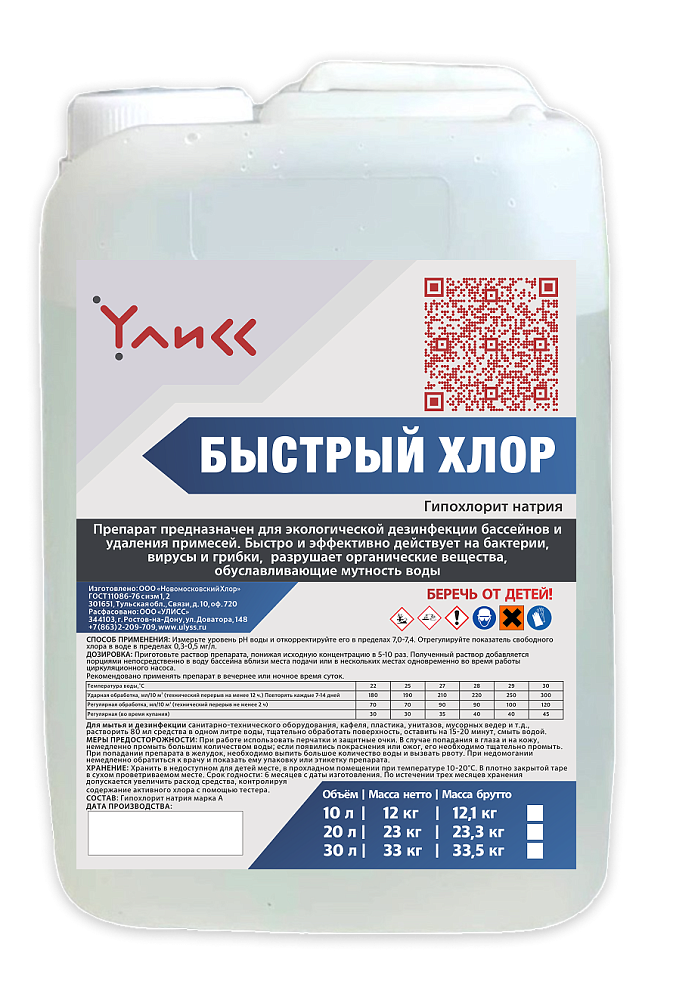 Хлор быстрый (гипохлорит натрия) УЛИСС Канистра 10 л