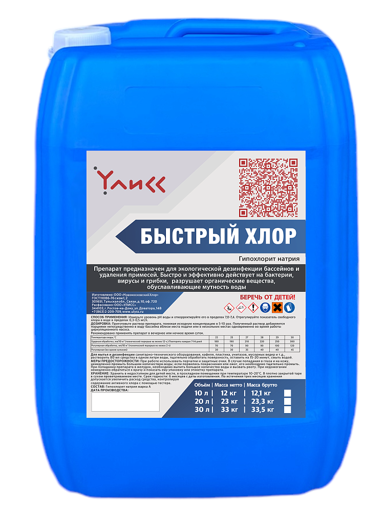 Хлор быстрый (гипохлорит натрия) УЛИСС Канистра 20 л