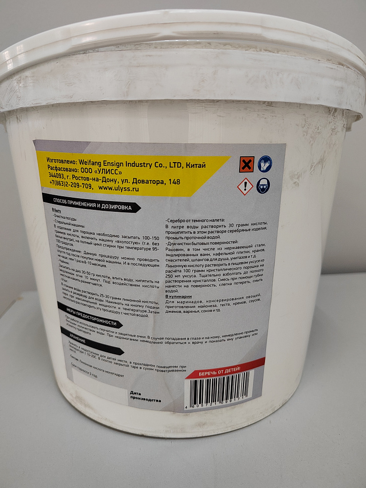 Кислота лимонная моногидрат пищевая, не менее 99,5%, фасовка 5 кг