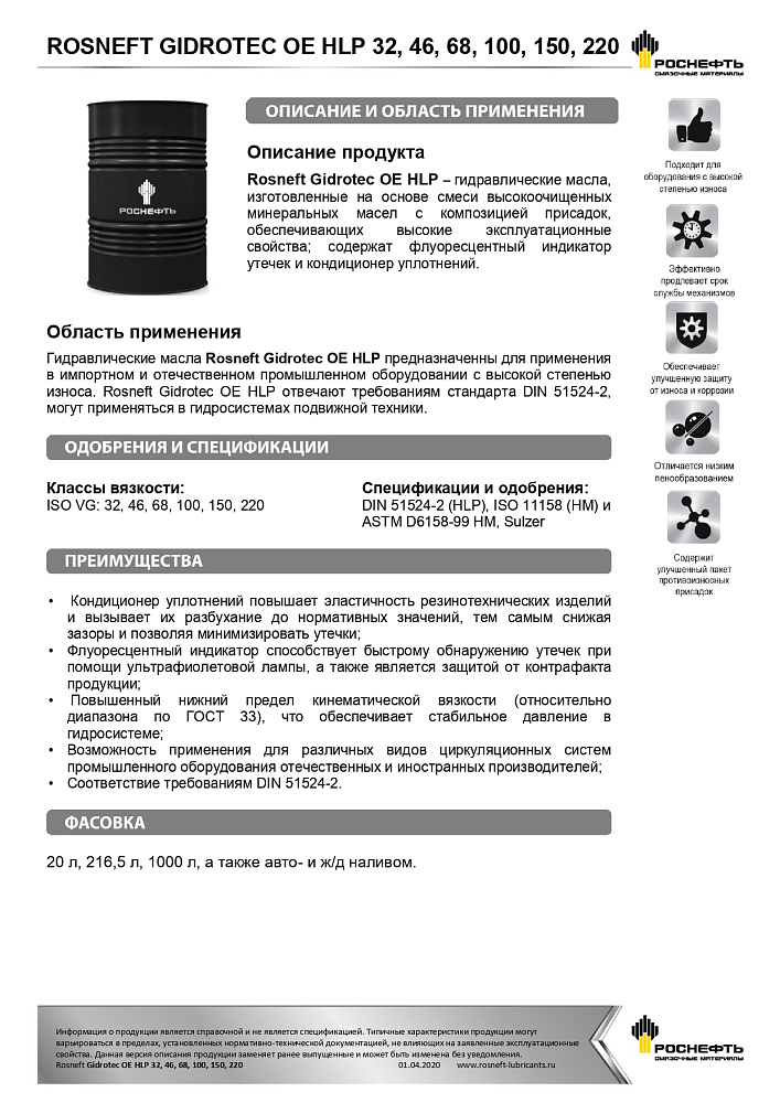 Rosneft Gidrotec OE HLP - PDF 491.57 КБСкачать