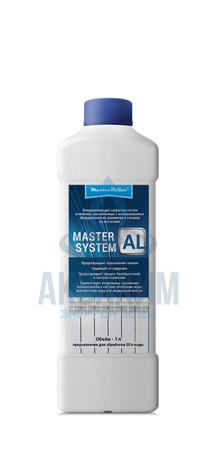 Master System Al - кондиционер для систем отопления, выполненных с использованием элементов из алюминия и его сплавов. Предотвращает процессы образования накипи и коррозии, биологии