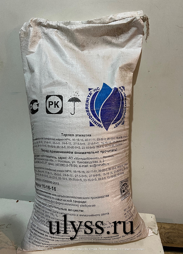 Комплексным оно является только по макроэлементам: в нем содержится Азот (N), Фосфор (P) и Калий (K), т.е. это азотно-фосфорно-калийное удобрение. Химическая формула: NH4H2PO4+NH4NO3+KCL. Выпускается в гранулированном виде, гигроскопичность и слеживаемость низкая. Класс опасности 3 (умеренно опасное вещество).Нитроаммофоску применяют для основного внесения (допосевного – при подготовке почвы к посадке) и припосевного (во время посадки), а также для подкормки (полива вегетирующих растений) на любых типах почв (черноземах, глинистых, песчаных, торфяных).Это самая популярная марка удобрения, особенно подходит для растений в фазе бутонизации и плодоношения.