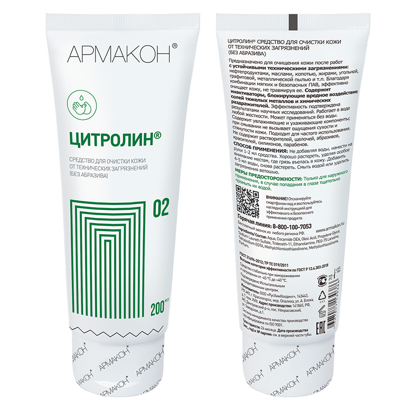 Паста для очистки рук АРМАКОН ЦИТРОЛИН 02 9920636 Туба 200 мл